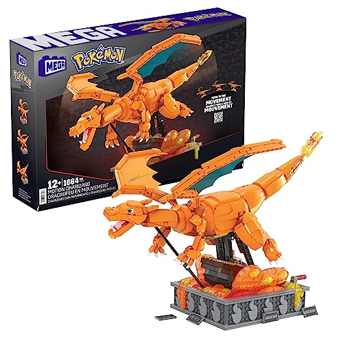 MEGA Pokémon Actionfigur Bauspielzeug für Erwachsenezusammenbaubares, bewegliches Glurak mit 1664 Teilen, circa 28 cm groß, für Sammler, HMW05