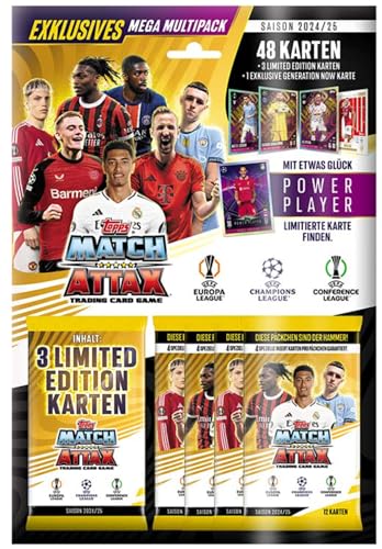 in SammelkartenTopps Match Attax UEFA Champions League TC 24/25 Mega Multipack mit 48 Karten + 3 Limited Edition Karten + Generation Now Karteinkl. Power Player Karte, von Topps