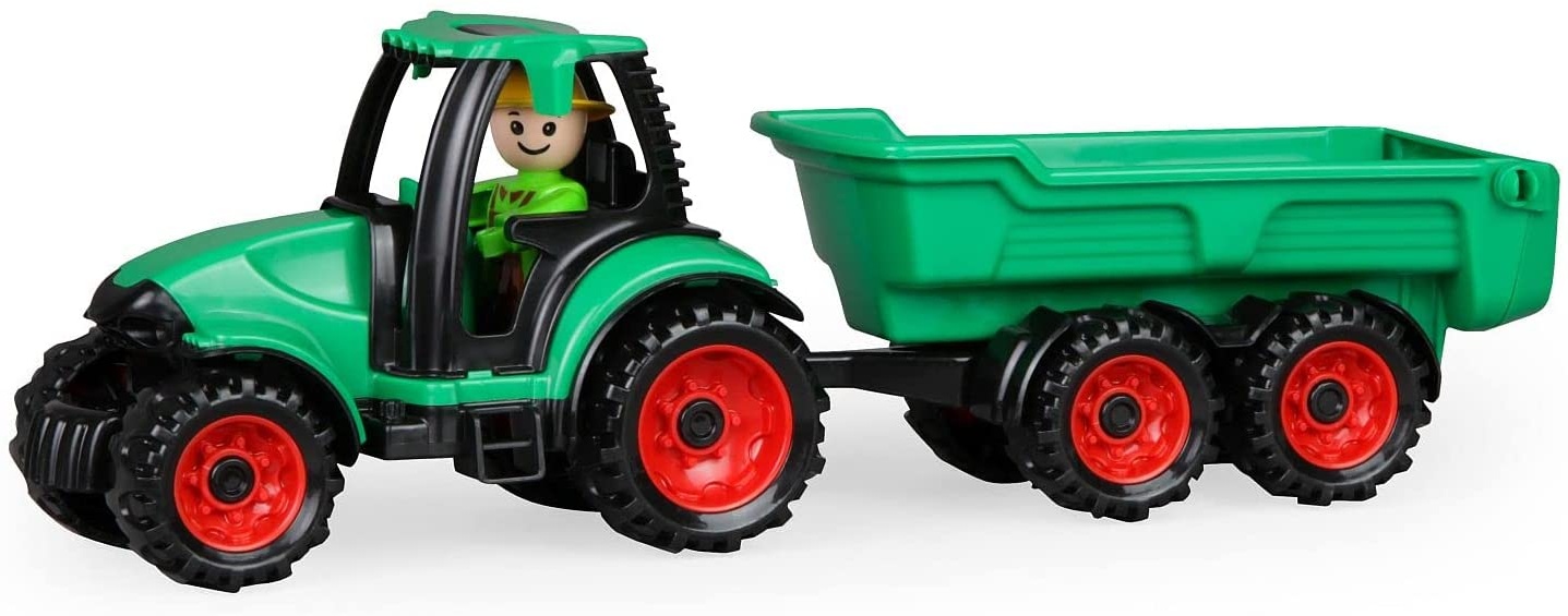 - Der LENA® Truckies Traktor mit Anhänger verfügt über verzinkte Stahlachsen für hohe Stabilität und Langlebigkeit.