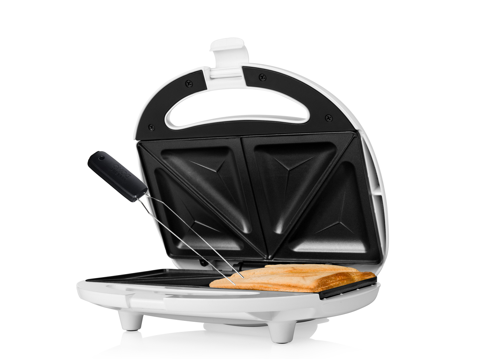 Tristar SAS3052 Sandwichtoasterfür 2 Sandwiches, 750W, inkl. Gabel, Backampel, antihaftbeschichtet, Kunststoff, weiß