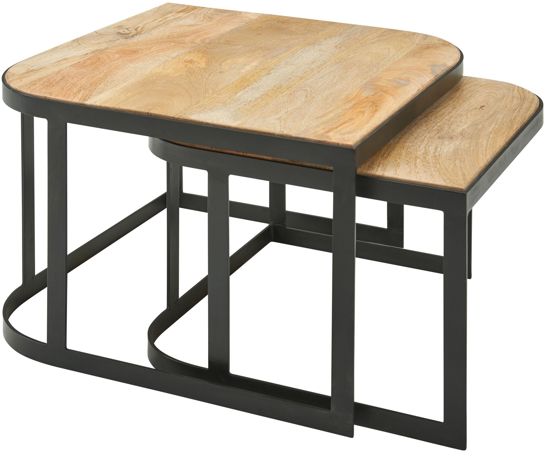 Wohnling Couchtisch 2er-Set,Massivholz/ Metall Mango hell40 x 60 x 60 cm