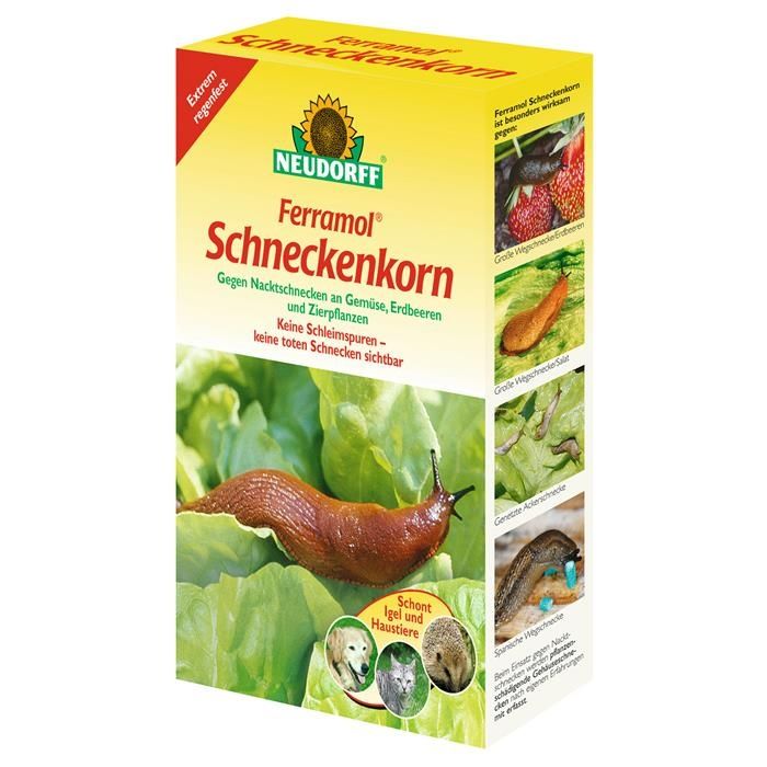 - Ferramol Schneckenkorn enthält den Wirkstoff Eisen-III-Phosphat, der nach der Köderaufnahme einen zuverlässigen Fraßstopp bei Nacktschnecken bewirkt.