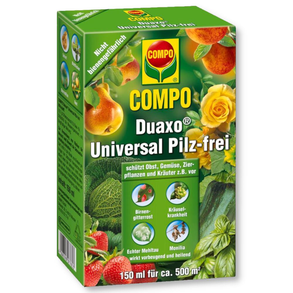 - Das Compo Duaxo® Universal Pilz-frei ist ein vielseitig einsetzbares Pflanzenschutzmittel zur Behandlung von über 30 verschiedenen Kulturen in Haus- und Kleingärten.