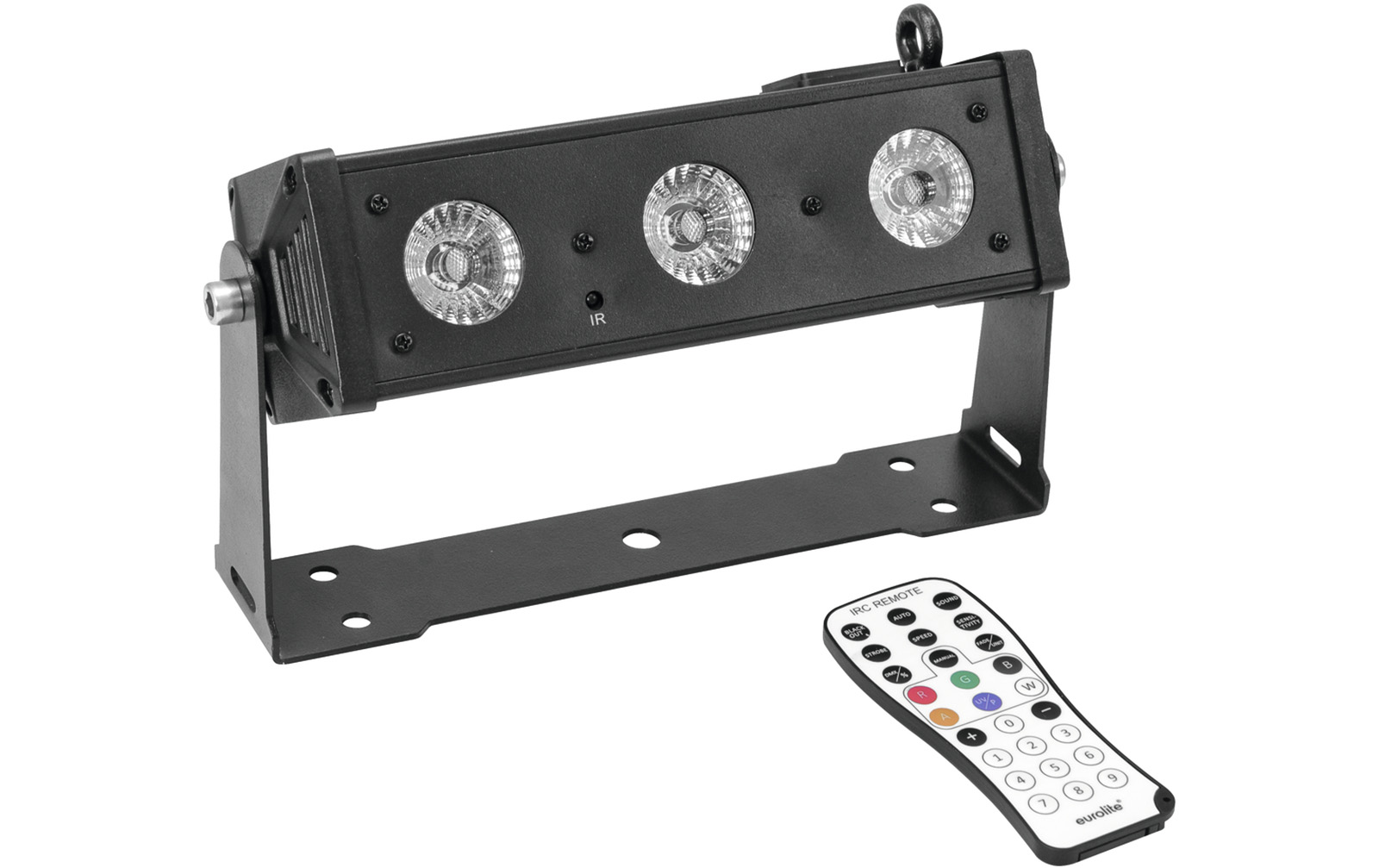 - Kompakte LED-Bar mit einer Länge von nur 26 cm und ausgestattet mit 3 leistungsstarken 12-W-RGBAW+UV-LEDs für eine vielseitige Farbgestaltung