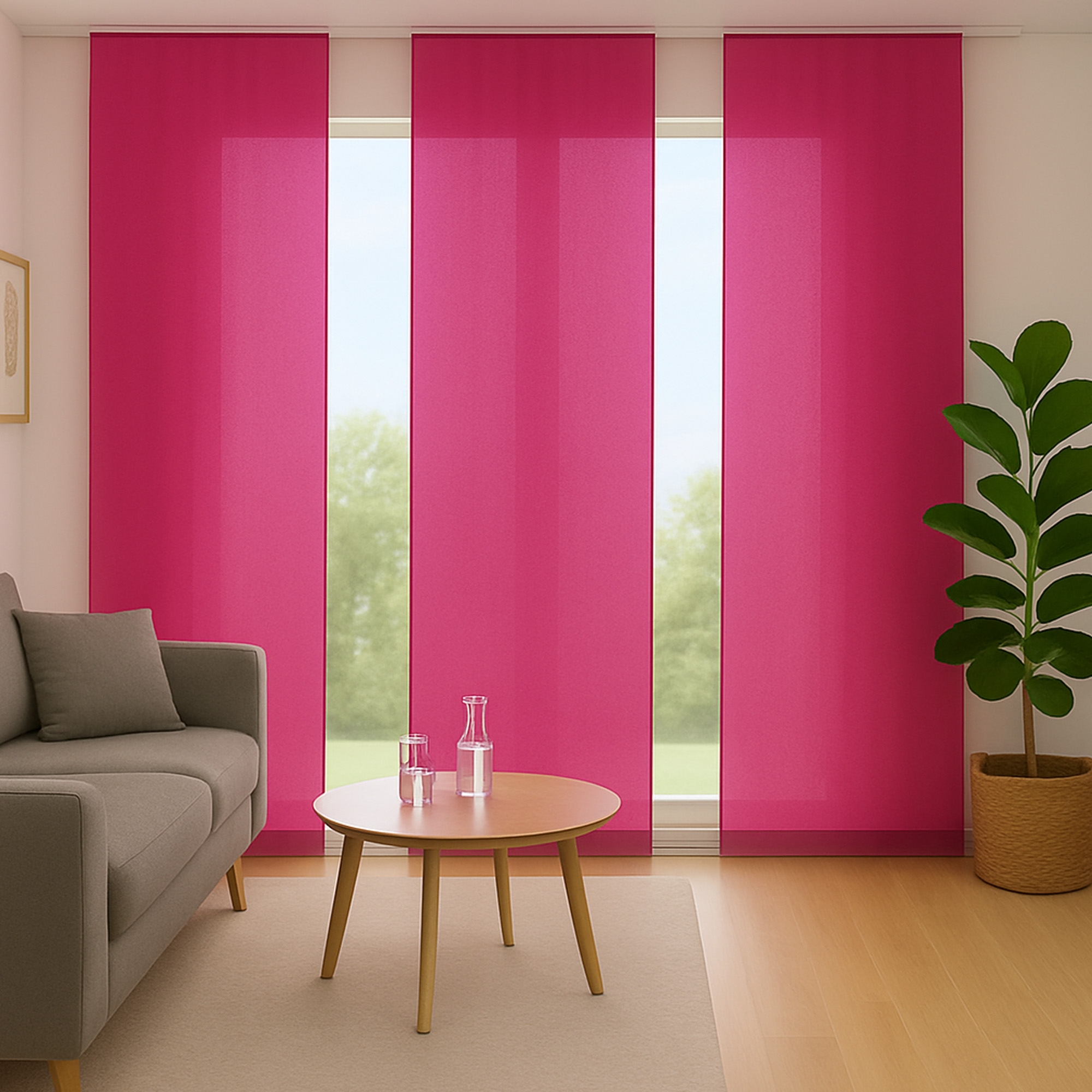 Flächenvorhang Ellen 3er Pack - Pink. Die blickdichten, unifarbenen Schiebegardinen der Serie "Ellen" in matter Optik bieten Ihnen ein stilvolles Dekorationsmittel und leichten Sichtschutz. Diese eleganten Vorhänge sind sofort einsatzbereit und verleihen Ihrem Raum einen edlen Look. **Highlights** - Blickdicht für optimalen Sichtschutz - Matte Optik für einen eleganten Look - Fensterfertig konfektioniert für sofortige Nutzung - Pflegeleicht und waschbar bei 30° C - Ideal für Schlaf-, Wohn- und Kinderzimmer **Produkteigenschaften** - Material: Polyester - Pflegehinweis: Schonend bei 30° C waschen (dunkle Farben separat waschen) - Geeignet für alle Räume, besonders für Schlaf-, Wohn- und Kinderzimmer