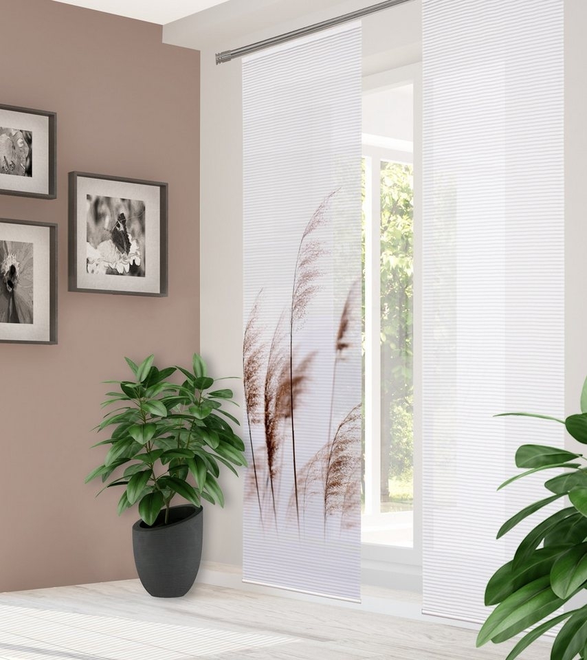 | Lieferumfang | 1x Schiebegardine, 1x Paneelwagen, 1x Alu-Klemmschiene, 1x Zubehör |