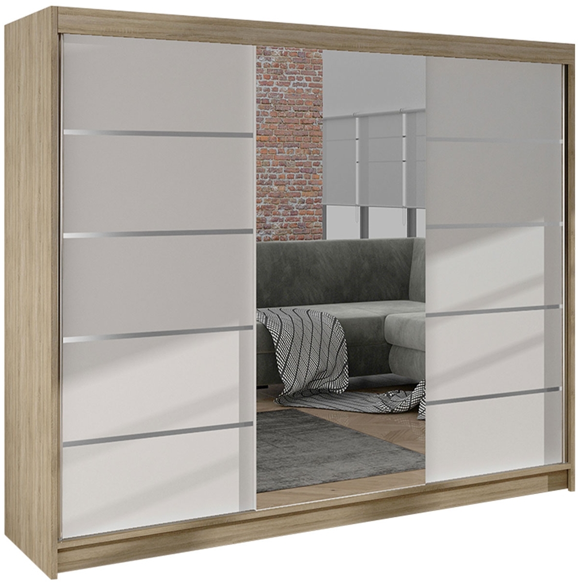 | Name | 'Dotan VI' Schiebetürenschrank mit Spiegel, Holz Sonoma eiche/weiß, 200 x 215 x 58 cm |