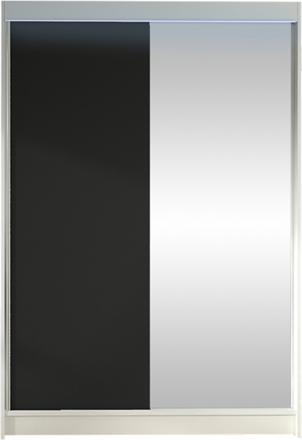 Kleiderschrank Lino I überzeugt durch sein modernes Design in Weiß / Schwarz und bietet mit seinen großzügigen Abmessungen von 120 x 200 x 58 cm viel Stauraum. Der Schiebetürenschrank ist mit einem Frontspiegel ausgestattet und verfügt über ein hochwertiges Schiebtürensystem mit Aluminium-Gleitschienen. Die integrierte Kleiderstange und die geräumigen Einlegeplatten sorgen für optimale Organisation. Bitte beachten Sie, dass die RGB LED Beleuchtung nicht im Preis enthalten ist. **Highlights** - Modernes Design in Weiß / Schwarz - Frontspiegel für zusätzlichen Komfort - Hochwertiges Schiebtürensystem mit Aluminium-Gleitschienen - Inklusive Kleiderstange und geräumigen Einlegeplatten - RGB LED Beleuchtung optional erhältlich **Produkteigenschaften** - Maße (HxBxT): 200 x 120 x 58 cm - Korpus und Fronten: Laminatplatte 16 mm - ABS-Rand für zusätzliche Stabilität - Aluminiumleisten als Türgriffe - Schiebetürenschrank mit modernem Stil **Lieferumfang** - Kleiderschrank Lino I - Montageanleitung zum Selbstaufbau - Lieferung bis zur ersten Tür (nicht auf Insel und Bergbewohnung) - Ohne Dekoration