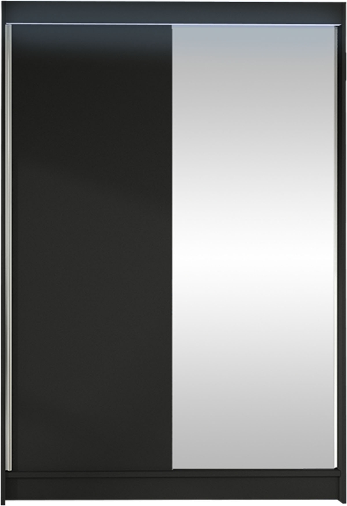 Kleiderschrank Lino I in Schwarz überzeugt durch sein modernes Design und praktische Funktionen. Mit den Maßen 120 x 200 x 58 cm bietet er ausreichend Stauraum. Der Schrank ist aus 16 mm Laminatplatte gefertigt und verfügt über ein Schiebtürensystem mit Aluminium-Gleitschienen. Ein Frontspiegel und eine Kleiderstange sind ebenfalls integriert. Die optionale RGB LED Beleuchtung sorgt für stimmungsvolles Licht. **Highlights** - Modernes Design mit Aluminiumgriffen - Schiebtürensystem für platzsparende Nutzung - Integrierter Frontspiegel - Robuste Laminatplatte für Langlebigkeit - Optionale RGB LED Beleuchtung **Produkteigenschaften** - Maße (HxBxT): 200 x 120 x 58 cm - Korpus und Fronten: Laminatplatte 16 mm - ABS-Rand - Aluminium-Gleitschienen der Firma sevroll – Typ micra - Ausgestattet mit Kleiderstange und geräumigen Einlegeplatten **Lieferumfang** - Kleiderschrank Lino I - Montageanleitung zum Selbstaufbau - Lieferung bis zur ersten Tür (nicht auf Insel und Bergbewohnung) - Ohne Dekoration