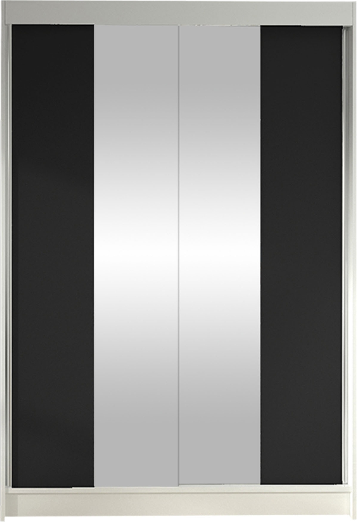 Kleiderschrank Lino II in Weiß / Schwarz bietet mit seinen kompakten Maßen von 120 x 200 x 58 cm ausreichend Stauraum für Ihre Kleidung. Der Schiebetürenschrank ist aus einer 16 mm Laminatplatte gefertigt und verfügt über ein modernes Schiebtürensystem mit Aluminium-Gleitschienen. Ein integrierter Frontspiegel und Aluminiumleisten als Griffe runden das stilvolle Design ab. **Highlights** - Schiebetürensystem für platzsparende Nutzung - Integrierter Frontspiegel für zusätzlichen Komfort - Aluminium-Gleitschienen der Firma sevroll – Typ micra für hohe Funktionalität - Griffe in Form von Aluminiumleisten für modernes Design - Ausreichend Stauraum mit Kleiderstange und Einlegeplatten **Produkteigenschaften** - Maße (HxBxT): 200 x 120 x 58 cm - Korpus und Fronten: Laminatplatte 16 mm - ABS-Rand für erhöhte Langlebigkeit - Mit Kleiderstange und geräumigen Einlegeplatten ausgestattet - Beleuchtung LED RGB nicht im Preis enthalten **Lieferumfang** - Kleiderschrank Lino II - Montageanleitung zum Selbstaufbau - Lieferung bis zur ersten Tür, nicht auf Inseln und in Bergbewohnungen - Ohne Dekoration