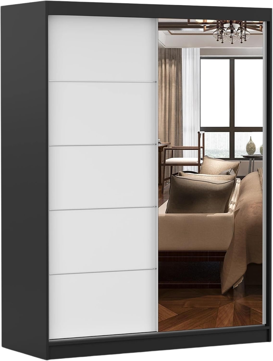 in SchiebetürenschränkeSchiebetürenschrankeleganter Kleiderschrank Schrank Garderobe Spiegel Vista 05, Schlafzimmer- Wohnzimmerschrank Schiebetüren Modern Design (Schwarz/Weiß)