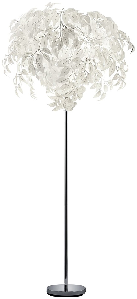 | Beschreibung | Die große Stehleuchte LEAVY mit ihrem dekorativen Blätter Lampenschirm in Weiß ist ein echter Hingucker für Ihr Zuhause. Mit einer Höhe von 180 cm und einem Durchmesser von 70 cm setzt sie stilvolle Akzente in Ihrem Wohnraum. Die Vielzahl an weißen Kunststoffblättern und der chromfarbene Fuß ermöglichen eine einfache Integration in verschiedene Farbkonzepte. Ausgestattet mit drei E14 Fassungen, ist die Leuchte für Leuchtmittel bis maximal 28 Watt geeignet. **Highlights** - Raffiniertes Design in Blätter Optik - Höhe: 180 cm, Durchmesser: 70 cm - Ausgestattet mit drei E14 Fassungen - Fußschalter für einfache Bedienung - IP Schutzklasse: 20 **Produkteigenschaften** - Material: Metall Chrom, Kunststoffblätter in Weiß - Leuchtmittel: 3 x E14, max. 28 Watt (nicht im Lieferumfang enthalten) - Praktisches Wohnaccessoire für junge Wohnstile - Energiesparende Beleuchtung mit LED Leuchtmitteln empfohlen **Lieferumfang** - Stehleuchte LEAVY - Leuchtmittel nicht enthalten |