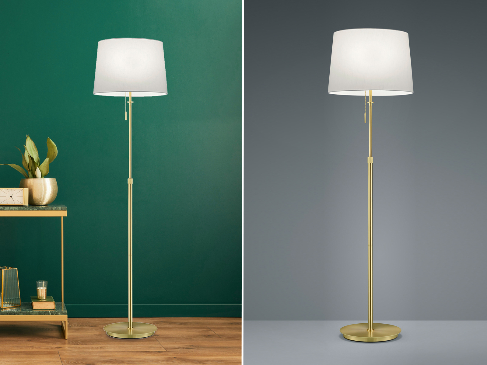 - Die Trio Lyon Stehleuchte hat eine elegante mattierte Messing-Oberfläche