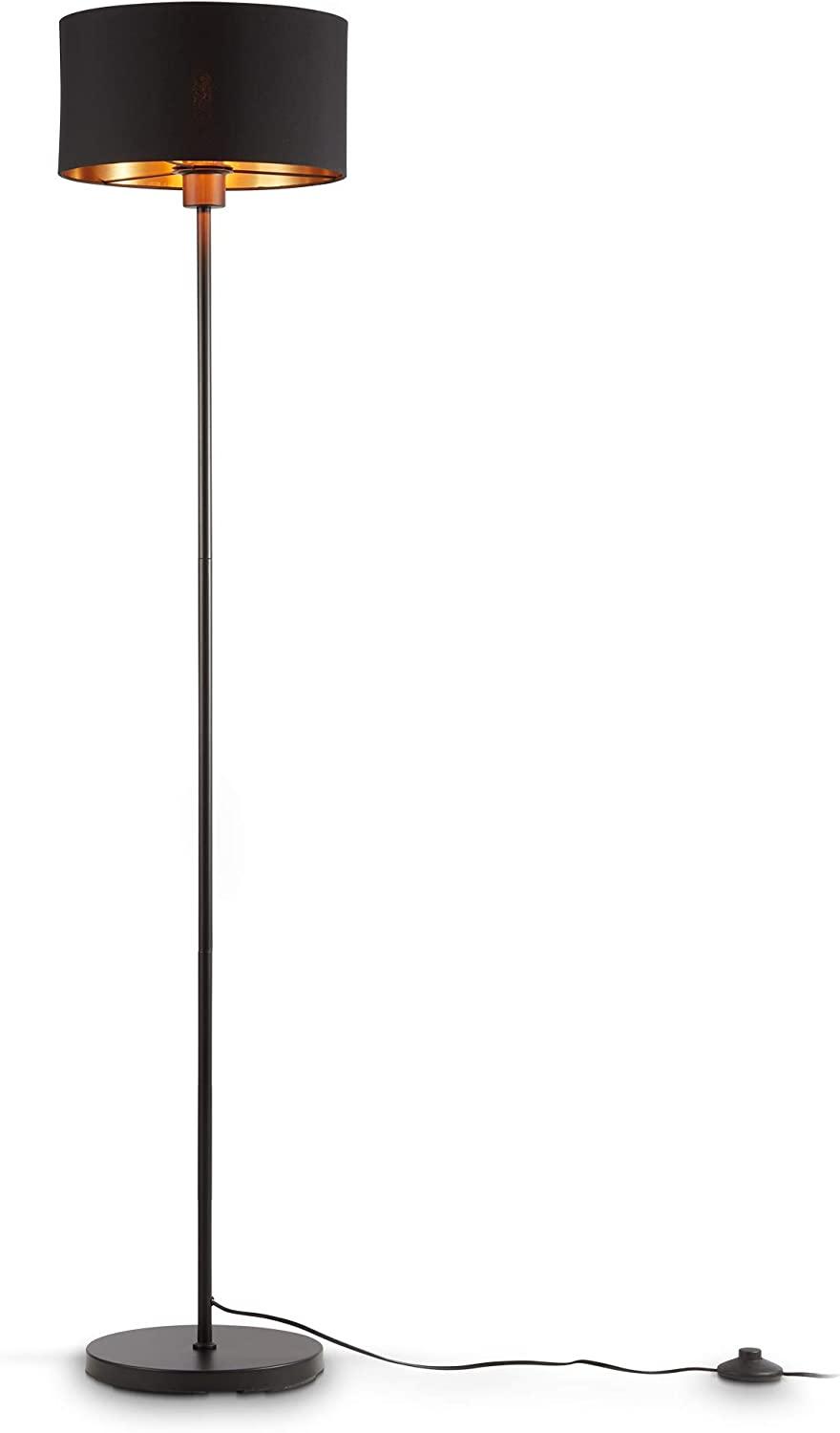 | Name | B.K.Licht Stehlampe Stoff-Stehleuchte Schwarz-Gold Textil E27 - BKL1417, ohne Leuchtmittel, Industrial Stoffschirm 30 cm 140 cm Kabel mit Fußtaster |