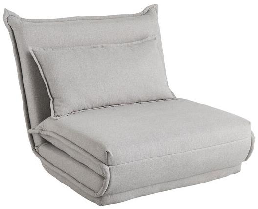 Vom Sessel zum Bett Du hast Gäste und brauchst einen zusätzlichen Schlafplatz? Mit deinem neuen Schlafsessel ist das kein Problem. Falte ihn einfach auseinander und schon hast du eine bequeme Liegefläche in deinem Wohnzimmer geschaffen. Wenn du am nächsten Tag wieder von der Bettfunktion zum Sesselmodus wechseln möchtest, faltest du den Sessel einfach wieder zusammen. Vielseitig einsetzbar als Sessel oder Gästebett Gemütlich gepolstert für mehr Komfort Inkl. bequemem Kissen für ein angenehmes Sitz- oder Liegegefühl Für mehr Komfort Die Schaumstoffpolsterung deines Klappsessels sorgt für eine komfortable Liegefläche und ein angenehmes Liege- oder Sitzgefühl. Mit dem praktischen Kissen findest du leicht eine bequeme Position und kannst es dir zum Lesen oder für einen Mittagsschlaf gemütlich machen. Mit deinem klappbaren Bettsessel liegst du immer genau richtig. Oase der Gemütlichkeit Egal, ob du den Schlafsessel als Gästebett in einem Gästezimmer aufstellst oder ihn als gemütlichen Lesesessel im Wohn- oder Schlafzimmer platzierst, mit seiner schlichten Farbe und dem modernen Design passt er sich deinen Möbeln leicht an. So sorgt das bequeme Modell in jedem Raum für eine gemütliche Atmosphäre, die zum Entspannen einlädt. Gemütlicher Lesesessel und kuscheliges Gästebett in einem: Dein neuer Schlafsessel ist variabel einsetzbar. Eigenschaften: Als Sessel oder Bett nutzbar Material: 100 % Polyester Schaumstoffpolsterung Holzgestell Farbe: grau Das Kissen befindet sich im Inlay des Schlafsessels Abmessungen/Gewicht: Sesselmodus, L x B x H: ca. 102 x 104 x 82 cm Bettmodus, L x B x H: ca. 102 x 225 x 17 cm Ca. 21 kg