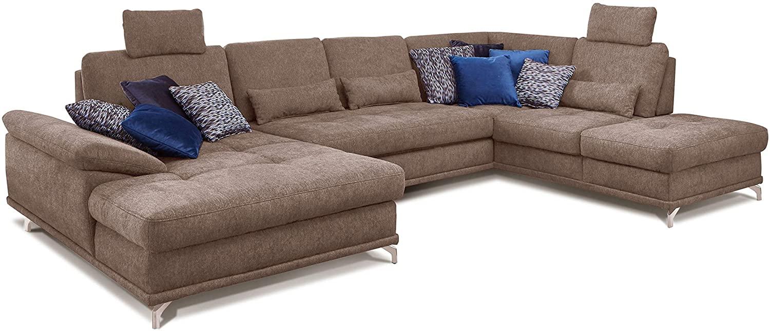 | Name | Cavadore Wohnlandschaft Castiel mit Federkern / Großes Schlafsofa in U-Form mit Bettkasten, Sitztiefenverstellung und Kopfstützen / 368 x 114 x 232 / Webstoff, Hellbraun |