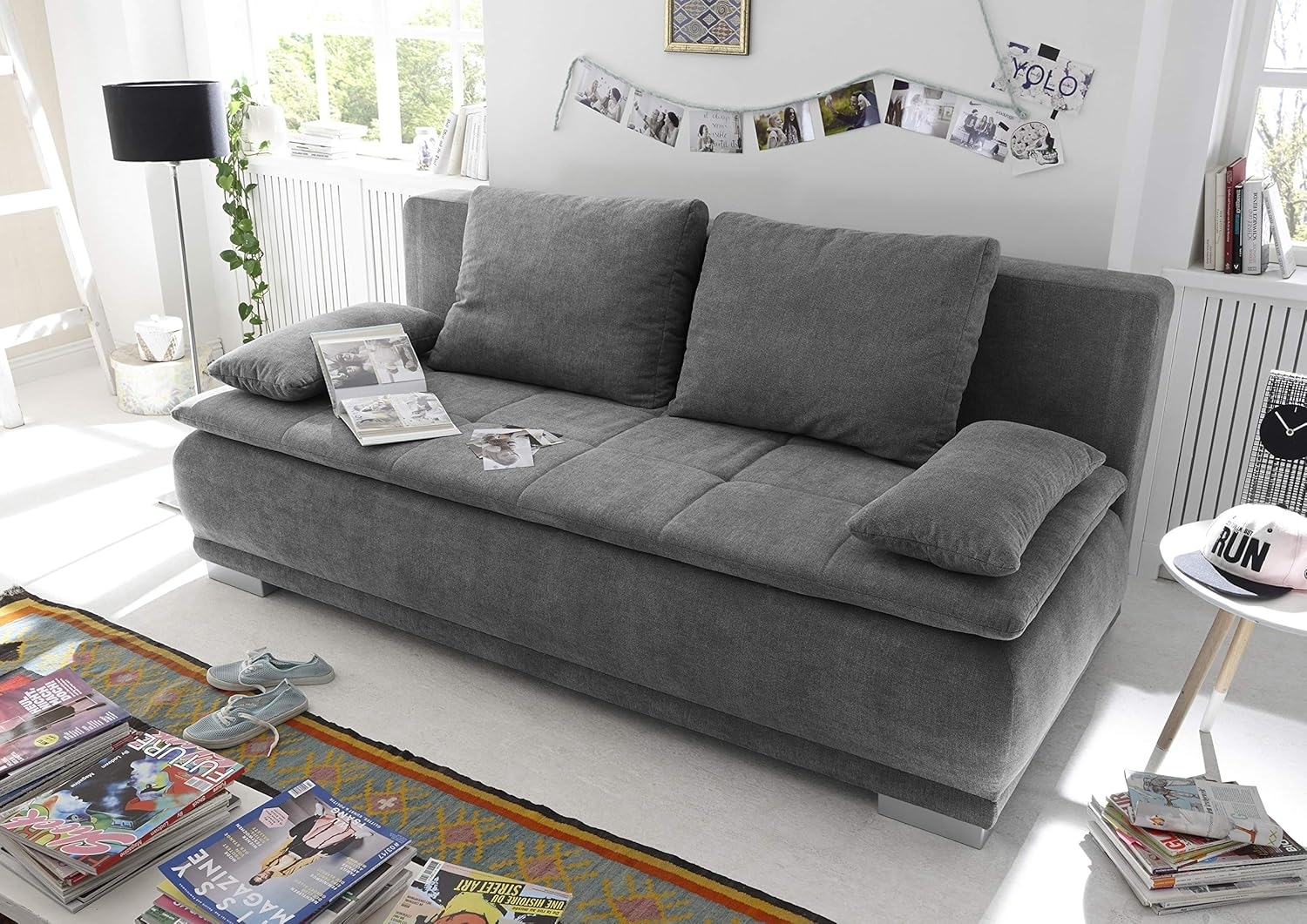 in SchlafsofasLUIGI Bequemes Schlafsofa mit BettkastenStoffbezug Dunkelgrau - Klappbares Sofa mit Schlaffunktion und fest vernähtem Schaumtopper - 211 x 93 x 103 cm (B/H/T)