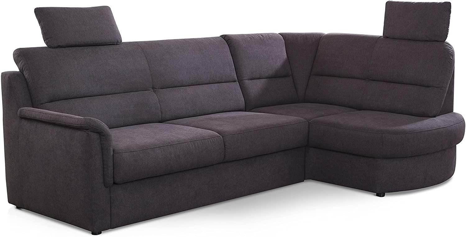 Cavadore Ecksofa Paris mit Federkern / Kleines L-Sofa mit VorziehsitzBettkasten und Ottomane / inkl. 2 Kopfstützen / 243 x 112 x 155 / Dunkelgrau