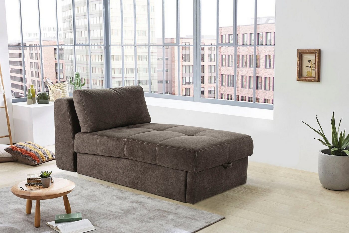 Das Schlafsofa Robin von Jockenhöfer Gruppe kombiniert modernes Design mit praktischen Funktionen. Es bietet eine Bettfunktion für zusätzlichen Schlafplatz und einen integrierten Bettkasten für Stauraum. Mit seiner kompakten Bauweise ist es ideal für kleinere Räume geeignet. Die losen Rückenkissen sorgen für erhöhten Komfort und Flexibilität. **Highlights** - Bettfunktion für zusätzlichen Schlafplatz - Praktischer Bettkasten für Stauraum - Kompakte Bauweise ideal für kleine Räume - Flexibles Design ohne Armlehnen - Lose Rückenkissen für erhöhten Komfort **Produkteigenschaften** - Untergestell aus Holzwerkstoff - Moderne Optik - Schmale Bauweise **Lieferumfang** - Schlafsofa Robin - Lose Rückenkissen - Ohne Armlehnen