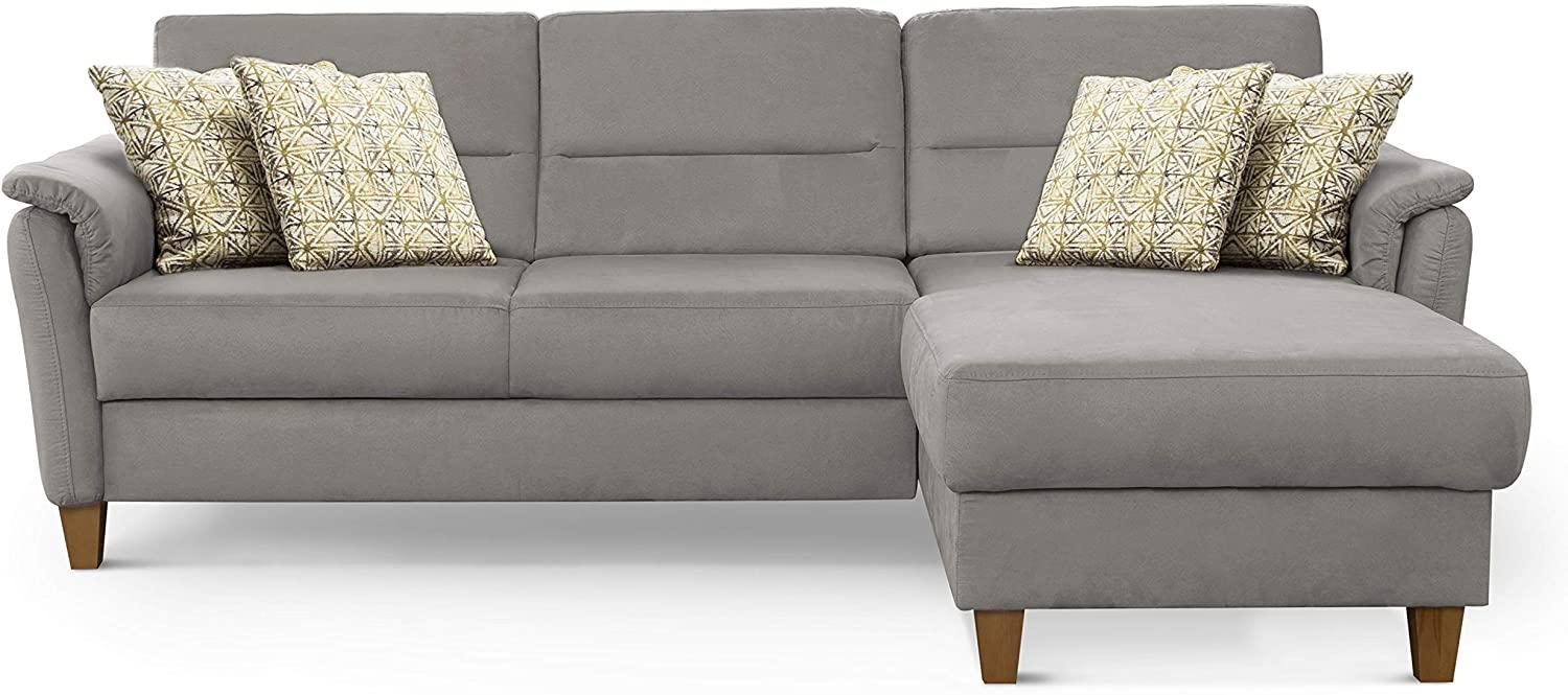 | Name | CAVADORE Schlafsofa Palera / Federkern-Ecksofa mit Schlaffunktion und Bettkasten / 244 x 89 x 163 / Mikrofaser-Bezug, Hellgrau |