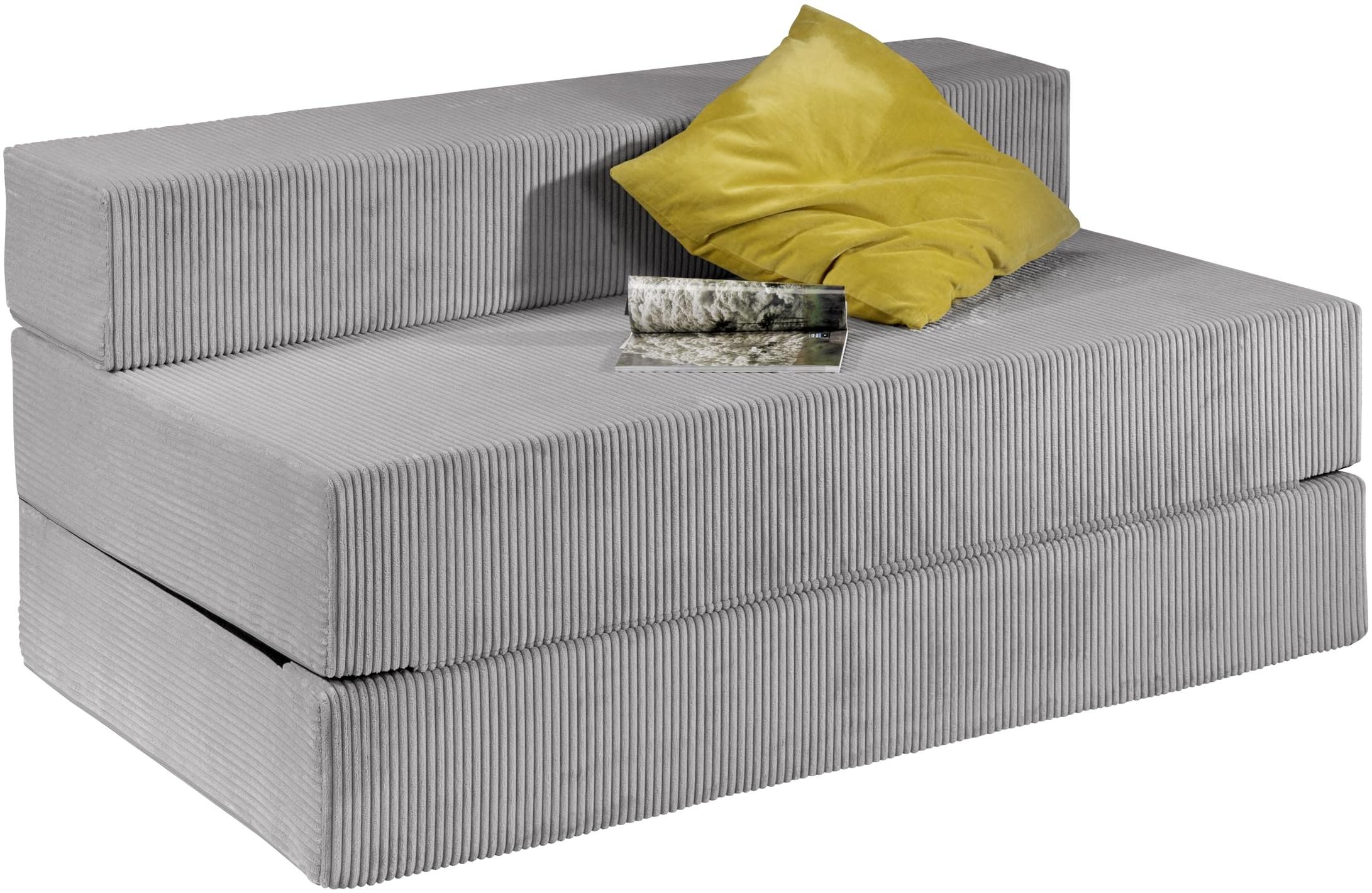 Das Traumnacht Schlafsofa mit grauem Cord-Gewebe ist ein multifunktionales Möbelstück, das Ihnen gemütlichen Sitzkomfort und eine praktische Schlaffunktion bietet. Der abnehmbare Bezug aus hochwertigem Kord-Gewebe ist besonders pflegeleicht und kann bei Bedarf in der Waschmaschine gereinigt werden. Mit den Abmessungen von 70 x 85 x 60 cm (Breite x Tiefe x Höhe) passt das Sofa in jeden Raum und lässt sich bei Bedarf zu einer Liegefläche von 200x70 cm ausklappen. Die Komfortschaumpolsterung sorgt für optimalen Sitzkomfort und einen erholsamen Schlaf. Das Schlafsofa ist einfach zu handhaben, erfordert keine Montage und kann leicht transportiert werden. Ideal für Kinder und Jugendliche, die mit wenigen Handgriffen vom Sofa zum Bett wechseln möchten. **Highlights** - Multifunktionales Schlafsofa ohne harte Kanten für idealen Schlafkomfort - Abnehmbarer und pflegeleichter Bezug aus grauem Kord-Gewebe - Komfortschaumpolsterung für optimalen Sitzkomfort und erholsamen Schlaf - Einfache Handhabung ohne Montage und leichter Transport - Liegefläche von 140x200 cm für ausreichend Platz zum Schlafen **Produkteigenschaften** - Abmessungen: 70 x 85 x 60 cm (Breite x Tiefe x Höhe) - Liegefläche: 140x200 cm - Bezug abnehmbar und waschbar bei bis zu 30°C - Hochwertiges graues Cord-Gewebe (380 g/m²) - Produziert nach deutschem Qualitätsstandard