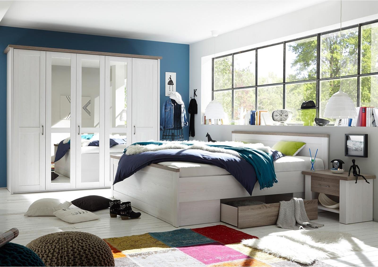 Schlafzimmer-Set >Lebbie< in Pinie Weiß - 241x49x42cm (BxHxT)