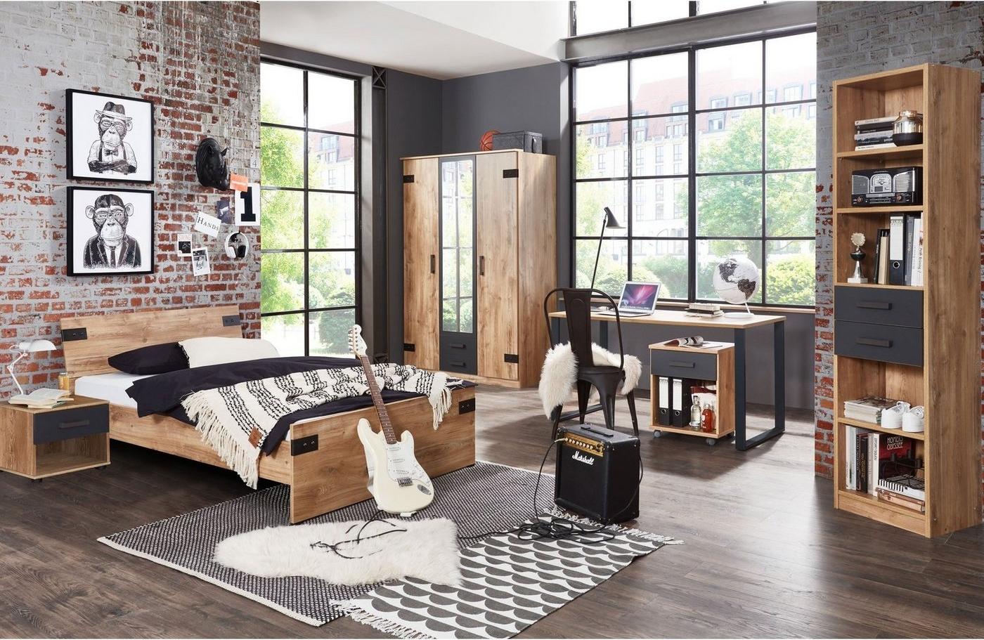 6-tlg. Jugendzimmer Liverpool in Plankeneiche Graphit 140x200