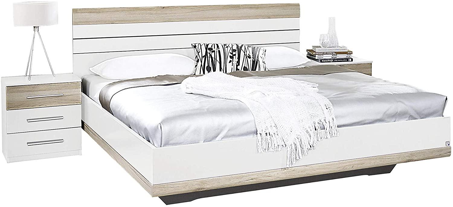 Rauch Möbel Tarragona Bett Futonbett inkluisve 2 Nachttische in Weiß und Eiche Sanremo hell Liegefläche 180x200 cm Gesamtmaße Bett inklusive Nachttische: BxHxT 289 x 102 x 207 cm