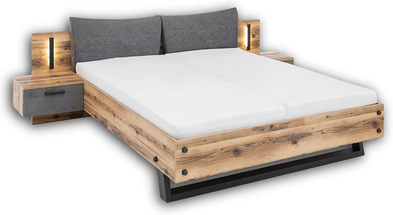| Name | Stella Trading 'DOVER' Bettanlage mit Nachtkommoden & LED-Beleuchtung, Alpine Lodge Optik/Betonoxid, 180x200 cm |