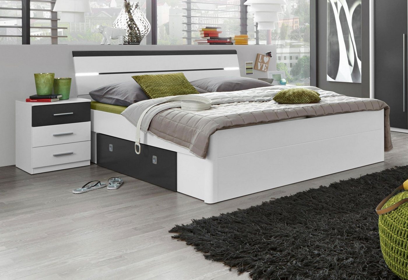 Mars 180x200 cm Weiss / anthrazit Bettanlage inkl. 2 Nakos inkl. Schubladen