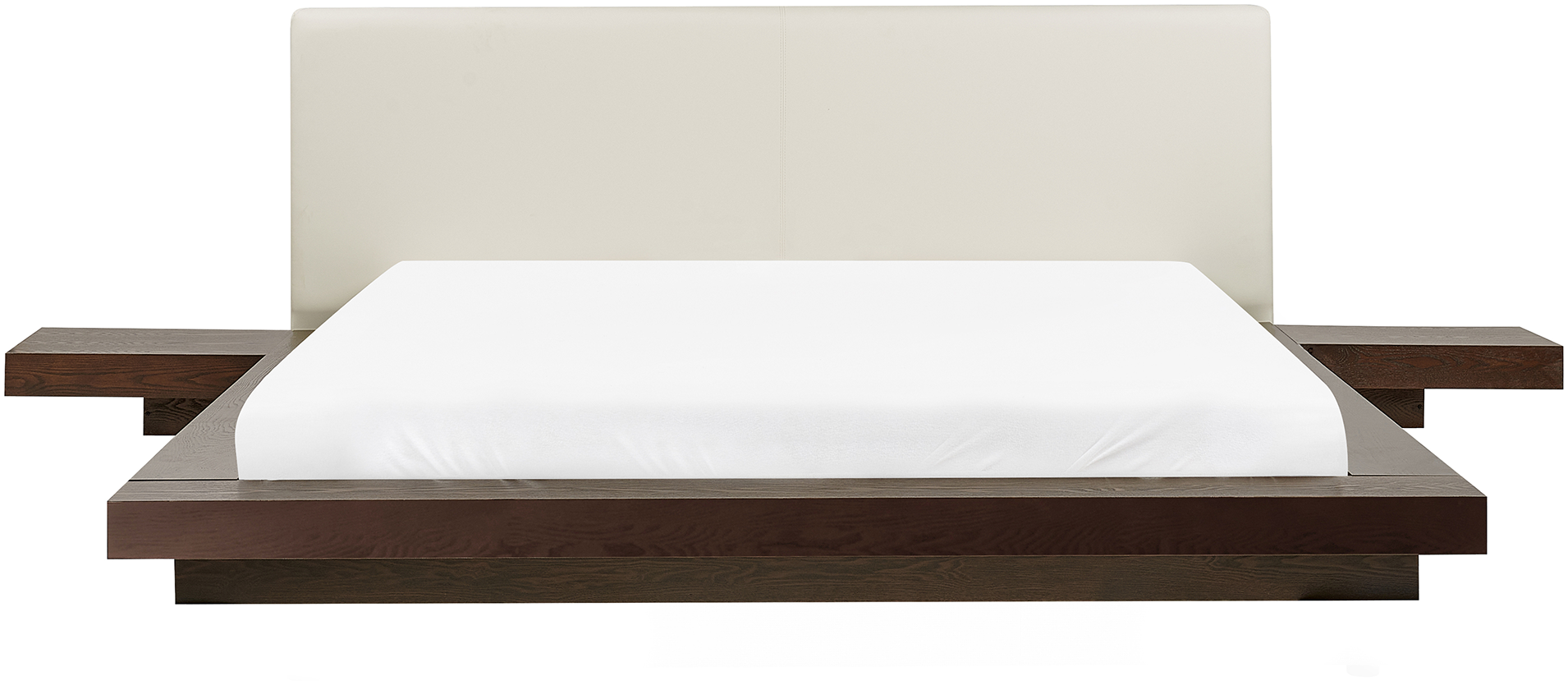 Exklusives Wasserbett im japanischen Stil: Das ZEN Wasserbett in dunklem Holzfarbton (160x200 cm) bietet Komfort und Eleganz. Mit klaren Linien und zwei abnehmbaren Nachttischen. Natürlicher Walnussholzfarbton und weißes Kunstleder harmonieren perfekt. Liegefläche: 160x200 cm. Max. Belastung: 350 kg. **Highlights** - Stoßdämpfende Federholzleisten für höchsten Liegekomfort - Wärmedämmung für Dual System - Internationales CE Prüfzeichen für Sicherheit - Moderne Ausstrahlung und langjährige Qualität - Bestellbar in 4 Beruhigungsstufen: Unberuhigt, Mittel beruhigt, Stark beruhigt, Voll beruhigt **Produkteigenschaften** - Leistung: 300 W - Art der Matratze: Mono - Spannung: 220-240 V (50 Hz) - Maße: 308 cm (B) x 229 cm (L) x 86 cm (H) - Gewicht: 192 kg **Lieferumfang** 1 x Bettrahmen, 1 x Wasserbettmatratze, 1 x Wasserbettmatratzenbezug, 2 x Thermostatgesteuerte Wasserbett-Heizelemente, 1 x Schaumstoffrahmen, 1 x Podest für Wasserbettmatratzen, 2 x Nachttische, 2 x Flaschen Konditionierer (je 250 ml). Nicht enthalten: Bettwäsche und Kissen.
