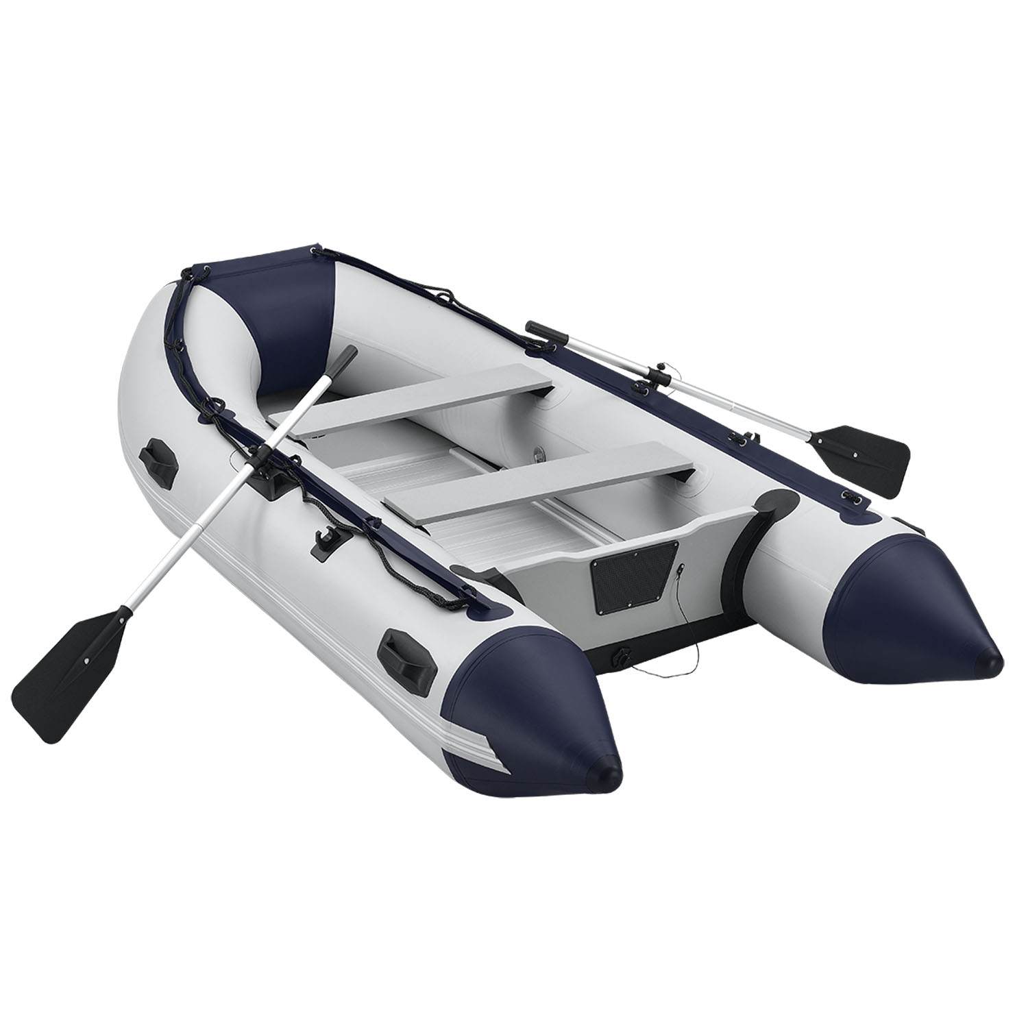- bequeme Sitzbänke für bis zu 4 Personen - 3 Luftkammern + Luftpumpe - Inklusive praktischer Tragetasche - Mitgeliefertes Reparaturset für kleine Schäden - Zusätzlich aufrüstbar durch einen Außenbordmotor **Aufblasbares Schlauchboot 3,20 m mit 2 Sitzbänken** Den idealen Freizeitspaß bietet dieses 3,20 m große Ruderboot. Ob zum Angeln oder auf Gewässern der Auslegungskategorie C, mit diesem Boot sind Sie perfekt ausgestattet für das schöne Sommerwetter! Durch die sorgfältig ausgewählten Materialien, wie PVC und Aluminium, besitzt das Paddelboot besonders stabile und strapazierfähige Eigenschaften. Es trotzt Salzwasser, intensiver UV-Strahlung und ist besonders reinigungsfreundlich. Die 2 Sitzbänke garantieren höchste Bequemlichkeit mit reichlich Fuß- und Stauraum. Bereits beigefügt zu Ihrer Bestellung finden Sie eine Luftpumpe, ein Reparaturset und eine Tragetasche, welche die umfangreiche Ausstattung abrunden. **Platz für bis zu 4 Personen** Durch die 2 Sitzbänke und dem geräumigen Fußraum haben bis zu 4 Personen bequem Platz. Dafür sorgen die großzügigen Bemessungen von 320 cm / 155 cm. Ein Spaß für die ganze Familie! **Hochwertige Verarbeitung** Aufgrund der hochwertigen Verarbeitung durch PVC und Aluminium ist das Boot besonders stabil und leicht zu pflegen. Weiterhin ist es Wetter- & UV-beständig. Ihnen steht also einem sorgenfreien Ausflug nichts entgegen. **Leicht zu transportieren** Mit den Tragegriffen und der beigefügten Tragetasche ist es einfach das Boot zu transportieren. Durch die platzsparende Aufbewahrung eignet sich dieses Boot ideal auch zum Einlagern. Immer sofort einsetzbar und transportabel! Somit steht dem spontanen Bootsausflug nichts mehr im Weg. **Schnell & einfach zu reparieren** Unter dem mitgeliefertem Zubehör befindet sich ein Reparaturset mit dem eventuelle kleine Schäden, wie Risse und Löcher, schnell und einfach behoben werden. Damit Sie lange Freude an Ihrem Boot haben! **Schnelle & leichte Inbetriebnahme** Das Boot ist schnell und einfach zusammengebaut! Aufgrund der beigefügten Luftpumpe und den 3 Luftkammern ist das Schlauchboot ganz leicht aufblasbar. Danach einfach die Bodenplatten einlegen und die Sitzbänke und die beiden Paddel anbringen. **Vielfältig einsetzbar** Vielseitig einsetzbar ist dieses Boot wegen der Auslegungskategorie C. Im See, Fluss oder in einer Bucht, unter Betrachtung der Wetterverhältnisse mit einer Windstärke von bis zu 6 Beaufort. **Zusätzlich aufrüstbar durch einen Außenbordmotor** Sie können mit einem Außenbordmotor Ihr Boot zusätzlich nachrüsten. Mit einem Außenbordmotor beträgt die max. Motorisierung des Bootes 11 Kw / 15 Ps. Legen Sie sich zurück und schonen Sie Ihre Muskelkraft! **Technische Daten:** - Material Boot: PVC - Material Boden: Aluminium - Material Tragetasche: Polyester - PVC-Stärke: 0,7 mm - Anzahl PVC Lagen: 3 - Anzahl Luftkammern: 3 - Gewicht: 55 kg - max. Motorisierung: 11 Kw / 15 PS - Maximale Beladung: 505 kg - Luftdruck: 0,25 Bar (Boot), 0,35 Bar (Kiel) **Abmessungen (ca.-Angaben):** - Länge: 320 cm - Breite: 155 cm - Höhe: 70 cm - Innenmaße: 207 x 80 cm (LxB) - Länge Paddel: 132 cm - Sitzflächen: Je 84,5 x 20 cm