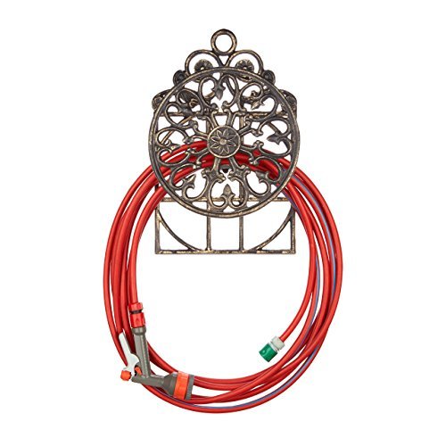 🔥 Deal in SchlauchhalterungenRelaxdays Schlauchhalter AntikGusseisen, Vintage Look, Wandhalter, HxBxT 50 x 32 x 20 cm, Gartenschlauchhalter, bronze