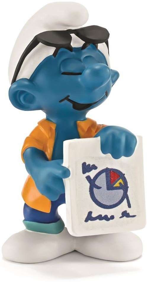 - Der Marketing Schlumpf präsentiert eine neue Grafik, die er stolz allen zeigt.