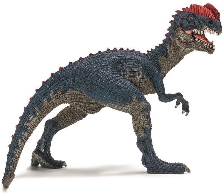Spielspaß mit der Schleich Spielfigur Dinosaurier Dilophosaurus Der Dilophosaurus war nach dem Compsognathus und dem Velociraptor eine der schnellsten Urzeitechsen. Trotz seinen sechs Metern Körperlänge wog er nur 500 kg und hatte lange, kräftige Hinterbeine, mit denen er mühelos Geschwindigkeiten von bis zu 38 km/h erreichte. Auf seinem Schädel trug er zwei auffällige Knochenkämme, die ihm auch den Namen „Zweikammechse“ gaben. Sie waren zwar groß und lang, aber zu dünn, um sich damit zu verteidigen. Wissenschaftler glauben, dass sie dazu dienten, Rivalen zu beeindrucken. Ein Krokodil hat dieselbe typische Kerbe im Oberkiefer wie der Dilophosaurus. Maße: 14,1 x 10,7 x 9 cm Altersempfehlung: ab 3 Jahre Achtung! Nicht für Kinder unter drei Jahren geeignet. Verschluckbare Kleinteile. Erstickungsgefahr.