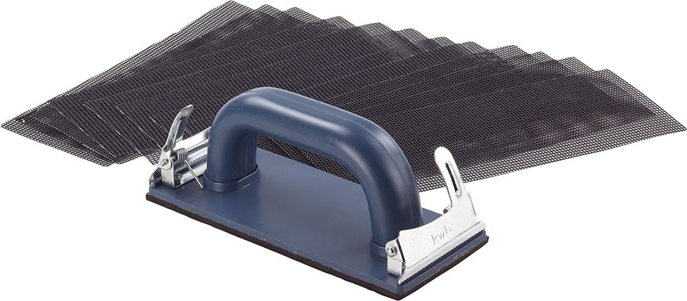 in Schleifgitterkwb Handschleifer-Set – 11-tlg. inkl. Schleifklotz mit Klemmvorichtung und Schleifgitter 93 mm x 230 mm (10 Stk.)