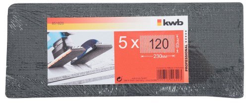 kwb Gitterleinen Schleif-Papier Schleifgitter-Scheibe für Nass- und Trocken-Schlifff. Hand-Schleifer 93 x 230 K-120, aus Fiberglas, gelocht m. Klett, 5 Stk.