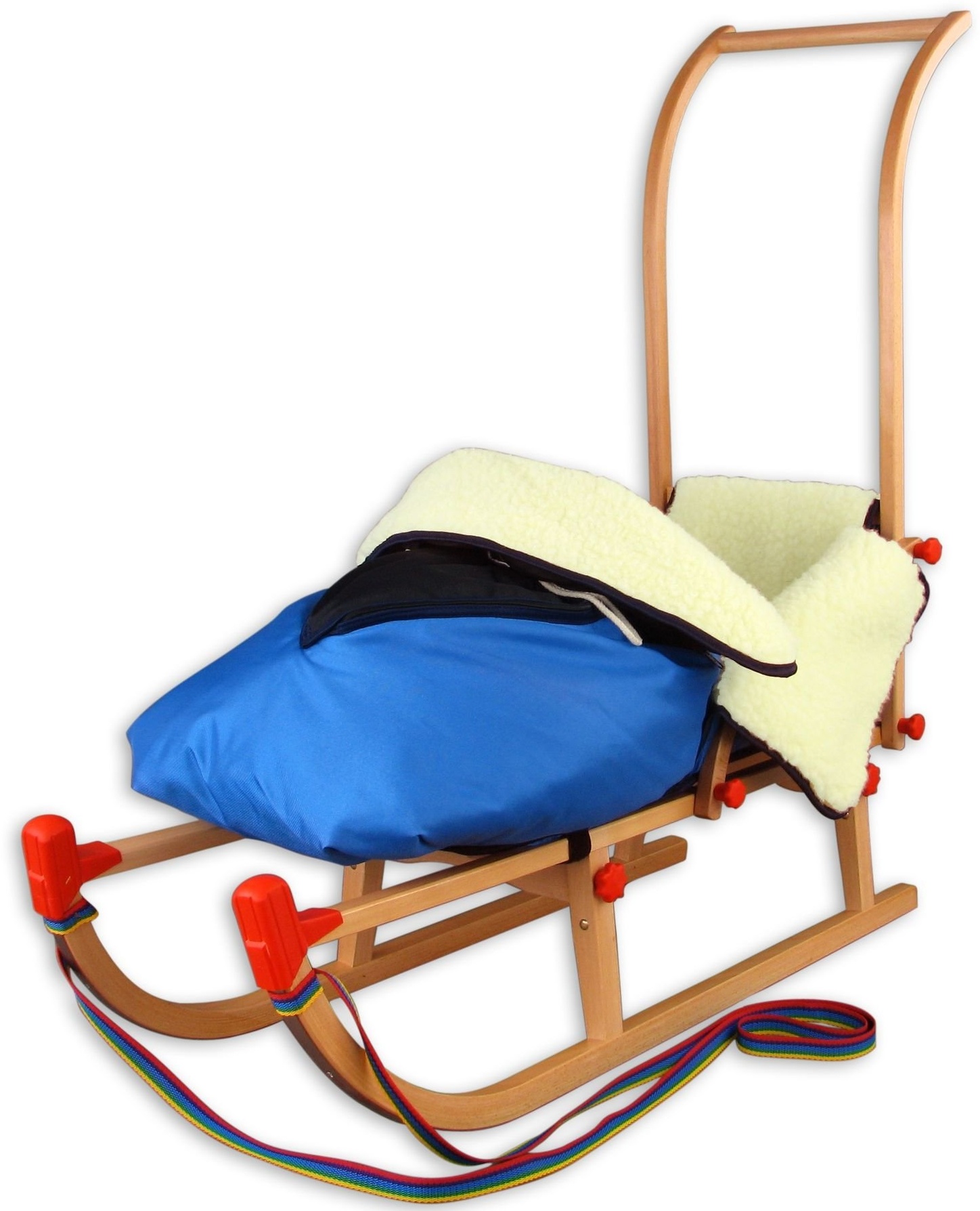 in SchlittenDavos Klappschlitten Rodelschlitten Schlitten aus Holz mit V-22-105 mit Schubstange und Fußsack blau