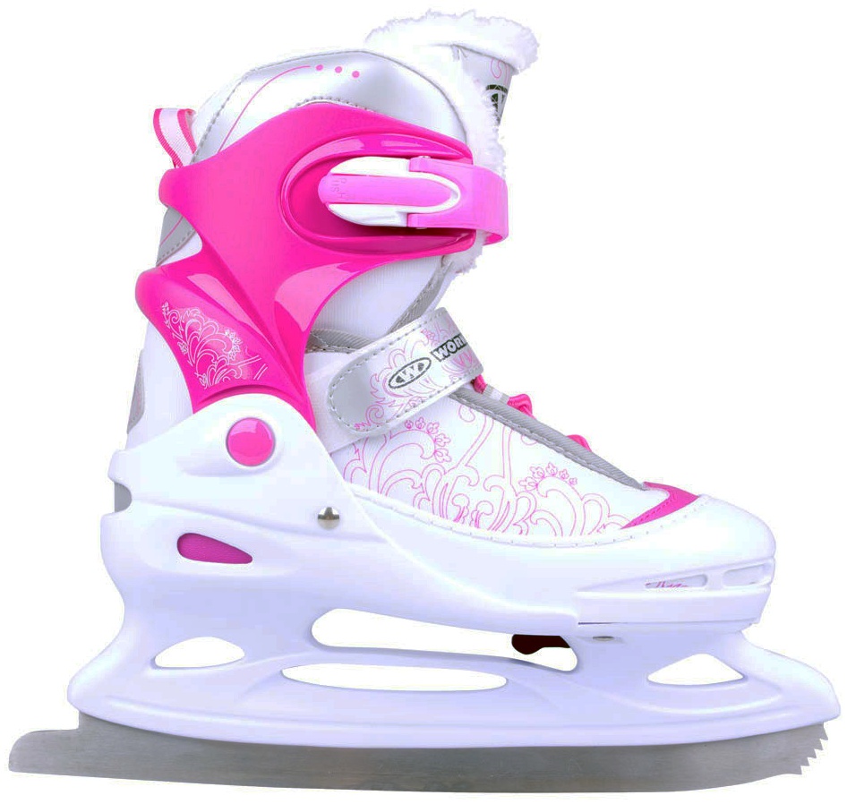 Kinderschlittschuhe Pury Pro mit Pelzrand- größenverstellbar in verschiedenen Größen Der perfekte Schlittschuh im modernen und trendigen Look für junge Eisläuferinnen. Das florale Muster in den Farben weiß/pink erklärt den Schlittschuh zum absoluten Hingucker der Saison. Das weiche, schnelltrocknende und herausnehmbare Innenfutter sorgt für Komfort beim Laufen und verhindert Druckstellen an den Füßen. Ein weiterer Vorteil des Schlittschuhs ist die einfache Einstellbarkeit über 4 Größen durch einen einfachen Knopfdruck an der Seite des Rahmens. Diese Schlittschuhe sind nicht nur einzigartig im Design, sondern setzen auch in Sachen Sicherheit die richtigen Maßstäbe. Technische Details: • Kunststoff-Außenschuh • komfortabler Innenschuh mit Comfort Fit Einlegesohle • verstellbar über 4 Größen • florales Design in den Farben weiß und pink • robuste Stahlkufen • Doppelschnalle mit Schnellverschluss • zusätzliche Schnürung • inkl. Kufen-Schoner • max. Belastbarkeit: 80 kg (XS, S, M) 100 kg (L)