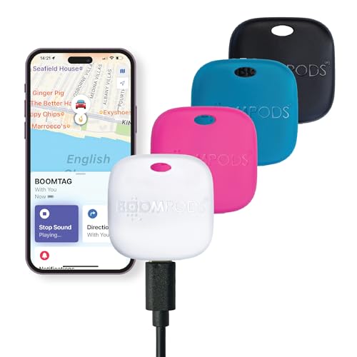 in SchlüsselfinderBoompods Boomtag Bluetooth Key Finder 4er Pack - Nachhaltiger Tracker aus Ozeanplastikwasserdicht, kompatibel mit Apple Wo ist? App, austauschbare Batterie, 6 Farben verfügbar