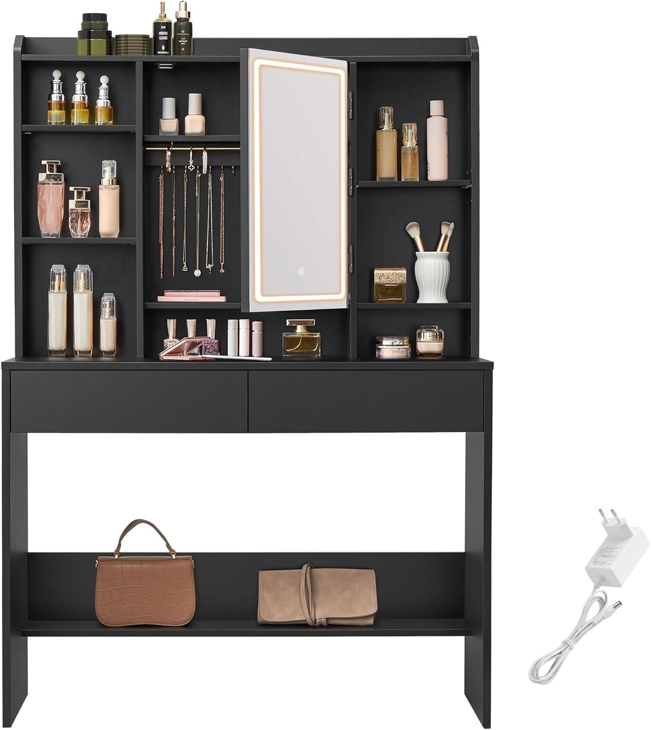 | Name | Vasagle Schminktisch mit LED-Beleuchtung, 3 Farben mit einstellbarer Helligkeit, Frisiertisch mit Spiegel, Kosmetiktisch mit verstellbaren Ablagen, 2 Schubladen, modern, tintenschwarz von Songmics |