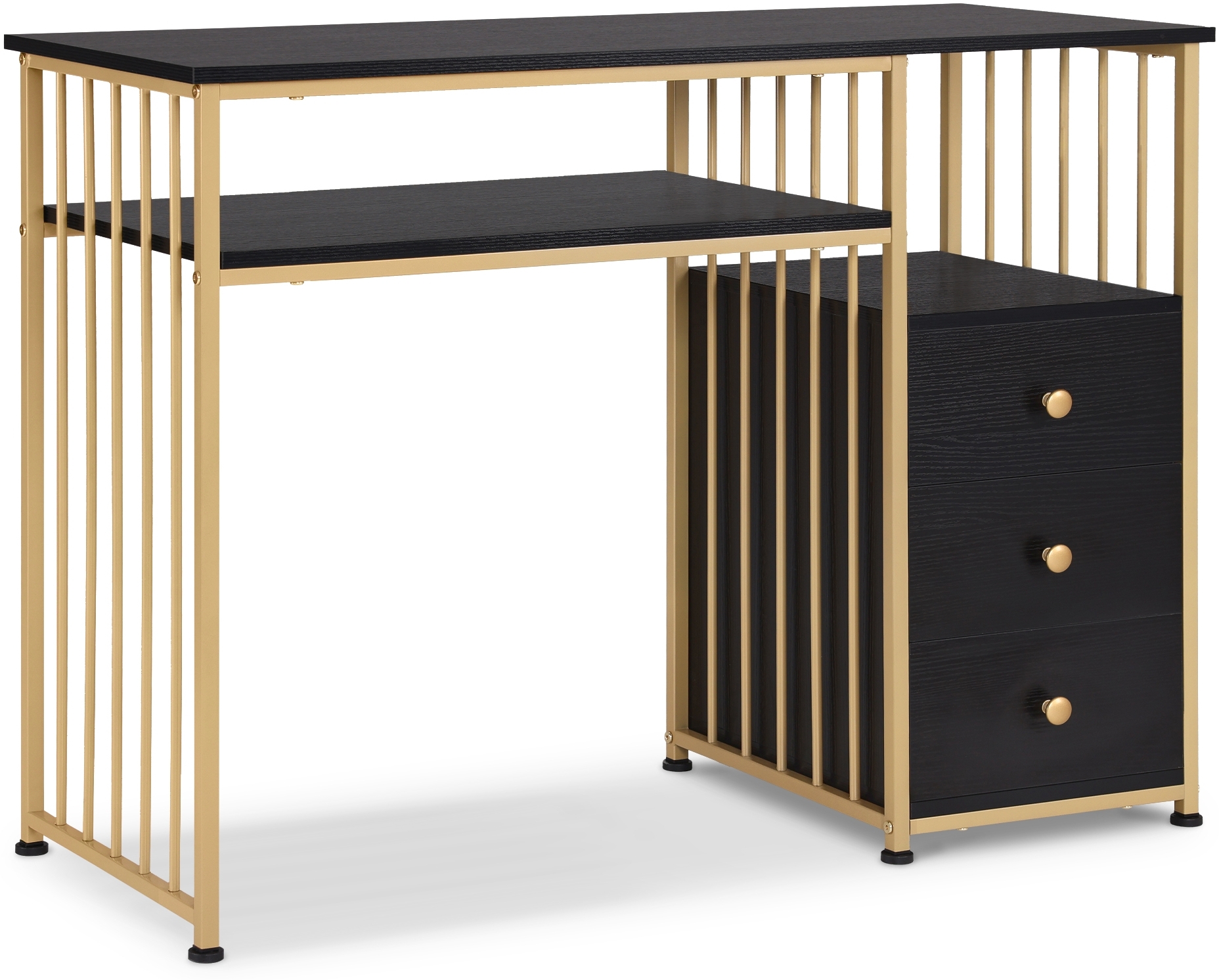 in SchminktischeM MCombo Schreibtisch mit SchubladenSchminktisch ohne Spiegel Schwarz-Gold, Nageltisch aus Holz Metallgestell, Computertisch Wohnzimmer Modern, 45,5 x 109 x 81cm, 2407GBK