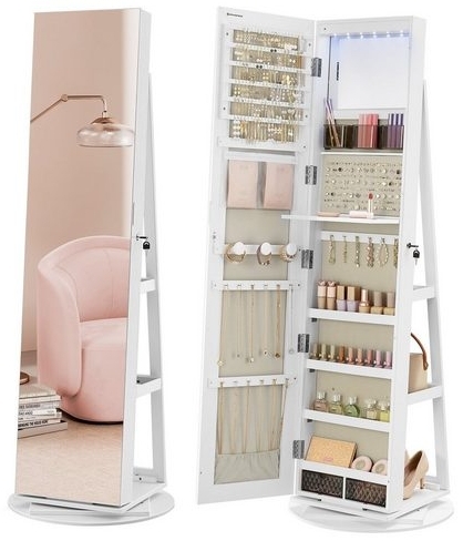 | Name | Songmics Schmuckschrank mit rahmenlosem Ganzkörperspiegel, 360° drehbar, abschließbar, Oberfläche weiß | Innenfutter grau, 162 x 54,5 x 54,5 cm |