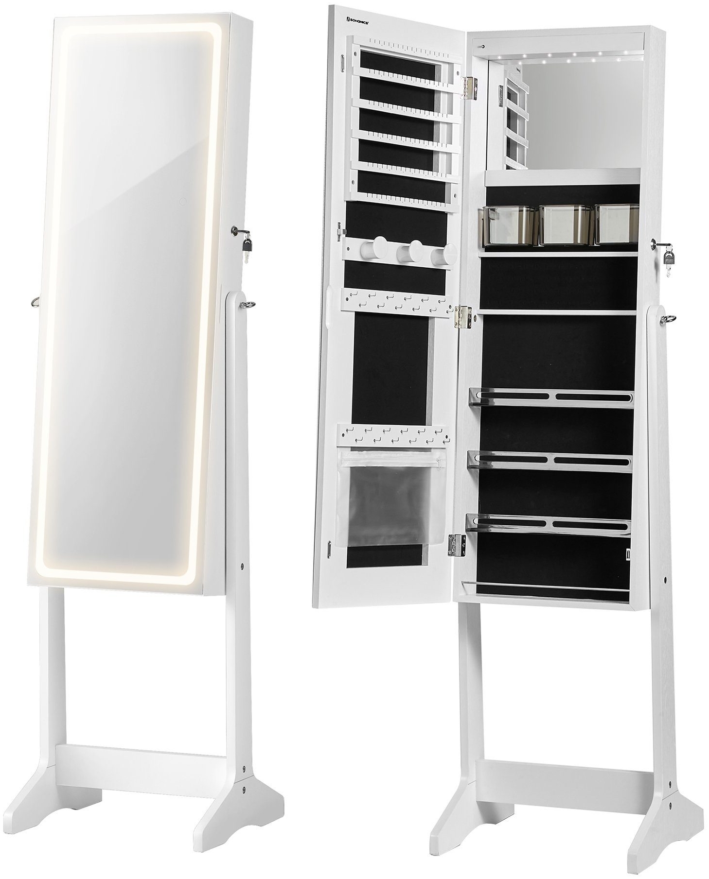 | Name | Schmuckschrank Spiegelschrank Schmuck Organizer mit LED Beleuchtung, Farbe und Helligkeit einstellbar, mit rahmenlosem Ganzkörperspiegel JJC012W01 |