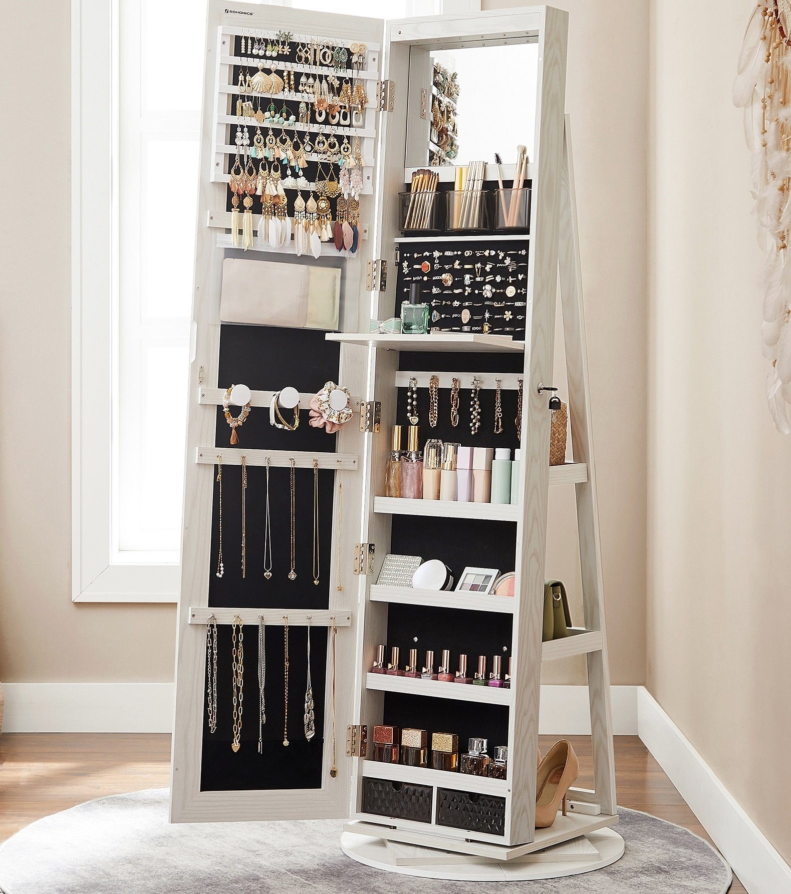 - Der SONGMICS Schmuckschrank verfügt über 3 Fachböden, die eine übersichtliche und praktische Aufbewahrung Ihrer Accessoires ermöglichen.