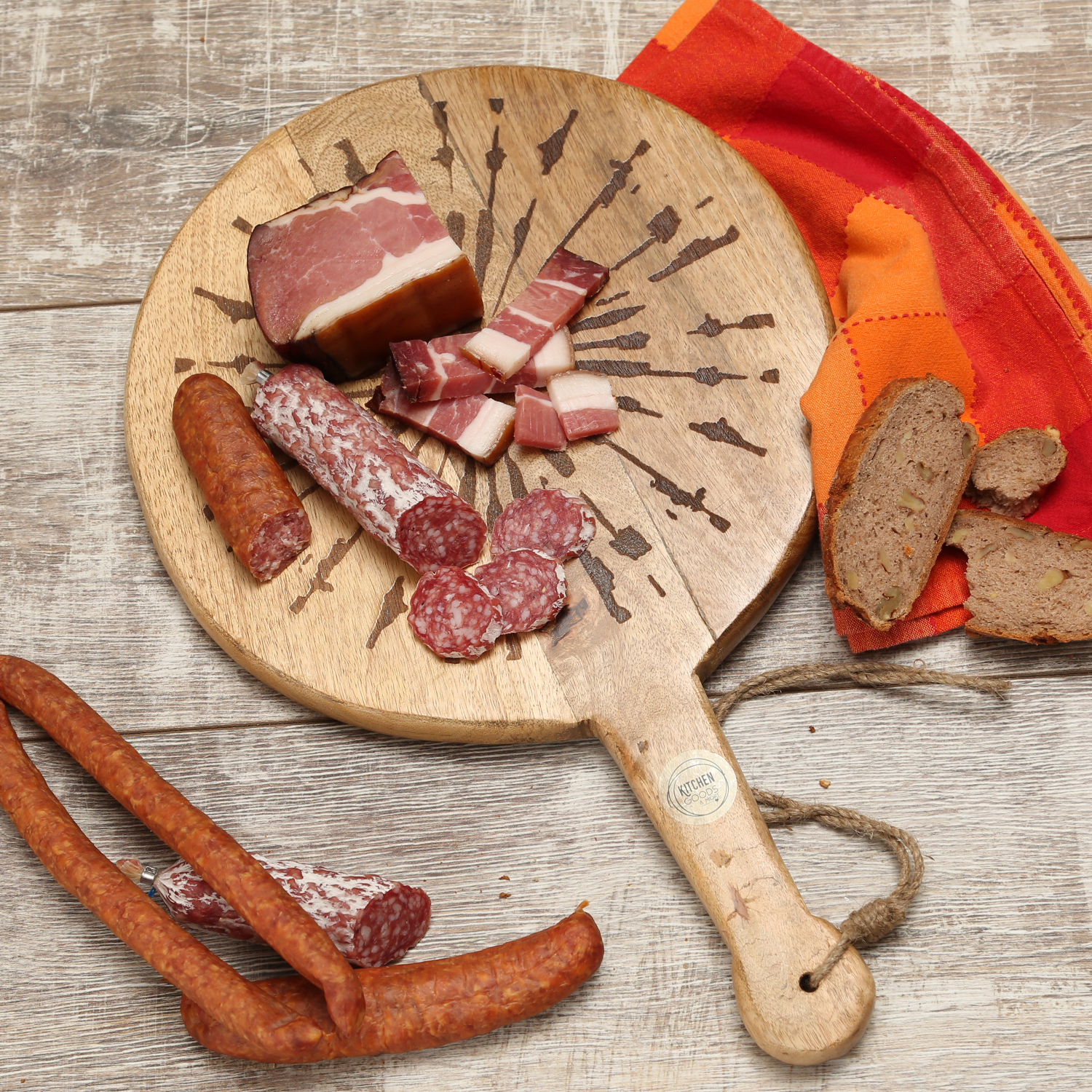 🔥 Deal in SchneidebretterSchneidebrett PUSTEBLUME - Servierbrett - rund - Mangoholz - mit Griff - L: 46cm - natur