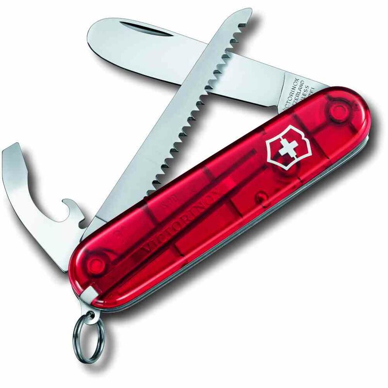 Das VICTORINOX Taschenwerkzeug ''My First Vx'' rot 9 Funktionen transparent rot ist ein beliebtes Geschenk für Kinder, jedoch sollten Eltern sicherstellen, dass das Kind reif genug ist und auf den Umgang mit einem Messer vorbereitet ist. Es ist von guter Qualität und schärfer als erwartet, aber das Ausklappen der Komponenten kann schwergängig sein.