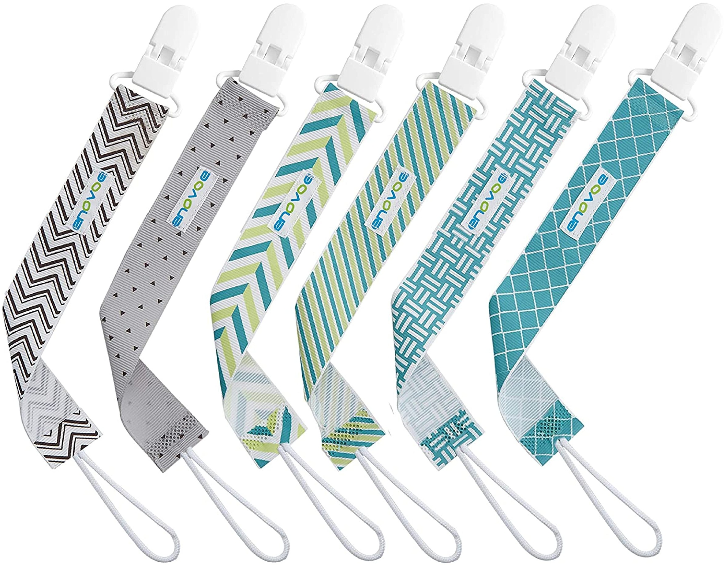 in SchnullerkettenEnovoe Schnullerclip von – 6er Pack Schnullerclips – Stylischer Beißring Schnullerhalter für Baby Jungen und Mädchen