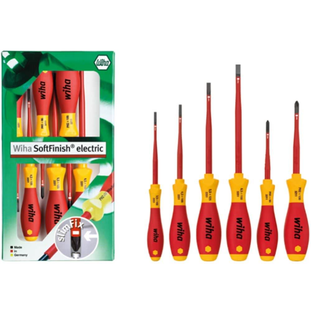 in SchraubendreherWiha Schraubendreherset SoftFinish slimFix (35389), 6 teilig, Schraubenziehersatz VDE Elektriker, isoliert 1000v, Schlitz/Kreuz