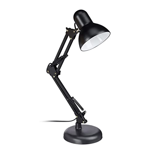 in SchreibtischlampenRelaxdays Retro SchreibtischlampeGelenk-Arm, schwenkbar, E27, Metall, schwarz, HxBxT: 50 x 27 x 15 cm